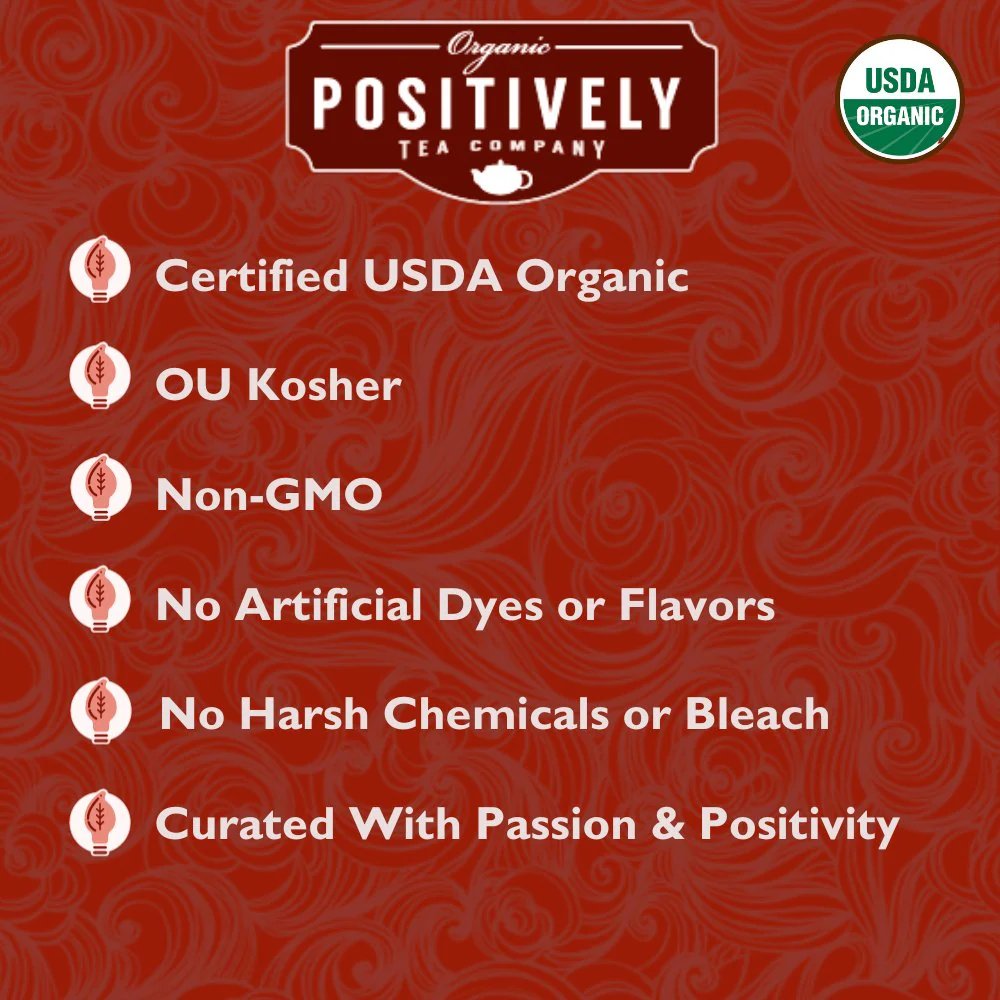 Here at Positively Tea, we’re curating the world’s most positive tea experience. We believe that high-quality tea products promote overall health and well-being. Tea is meant to be enjoyed, and the process, brewing either loose-leaf or bagged tea, should be as health-conscious as possible. We’re proud to offer exclusively bleach and glue-free tea bags so that every Positively Tea customer can enjoy the natural flavors and benefits without the use of toxic glues and chemicals. Our entire product line is USDA certified organic and sourced with the utmost care so you always arrive at an outstanding cup of tea.