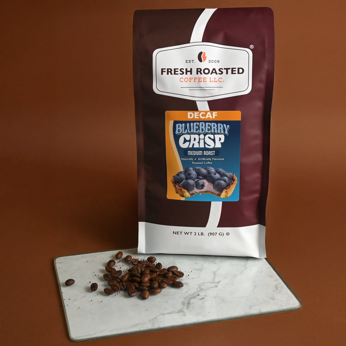 Craving a delicious dessert but not the calories or the caffeine? Our new Decaf Blueberry Crisp Flavored Coffee offers all the fruity, warm, cinnamon goodness along with your favorite Fresh Roasted Coffee in a convenient, delectable, guilt-free bag. What's missing? Just the jitters.