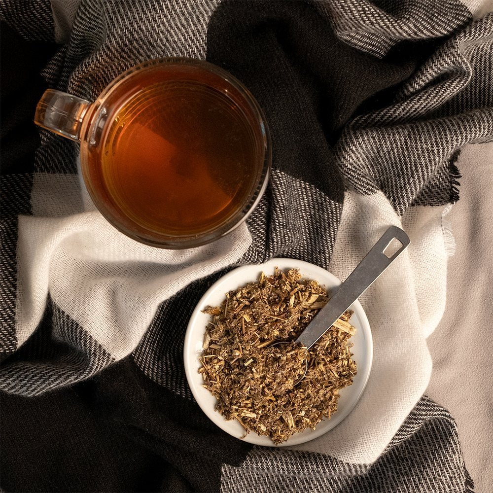 While Mugwort sounds like something out of a fantasy novel, Artemisia vulgaris is very real and has been used for centuries in traditional medicinal practice. Mugwort tea consists of the leaves and stems of the mugwort plant. The liquor is bitter, but can be sweetened with honey or served over ice to improve the flavor. The bitter flavor may aid digestion and help to settle the stomach.
