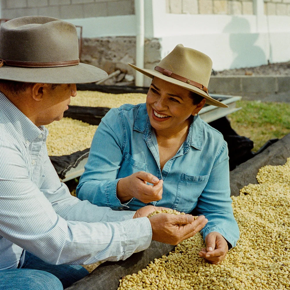Unlike traditional farms with large, contiguous plots, El Puente’s approach involves cultivating smaller, scattered plots across four distinct municipalities: Chinacla, San Jose, Marcala, and Santa Ana. This decentralization presents challenges in terms of management and cherry collection, but it also results in a rewarding experience to witness the profound impact of “terroir” on coffee flavor. El Puente is profoundly committed to the environmental sustainability of its farms. Their unwavering focus goes into improving the soil to create a healthy growing environment for their coffee trees. They produce organic fertilizer from cow and chicken manure mixed with coffee cherry pulp and other organic materials. The soil undergoes annual analysis to ensure it nourishes the coffee adequately. All water used for processing undergoes thorough filtration before being released back into nature, preserving the purity of local water sources.